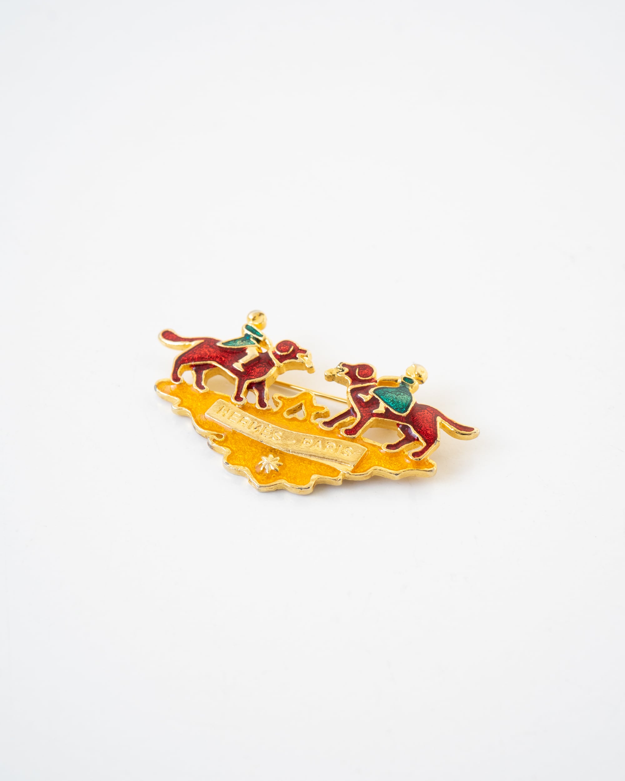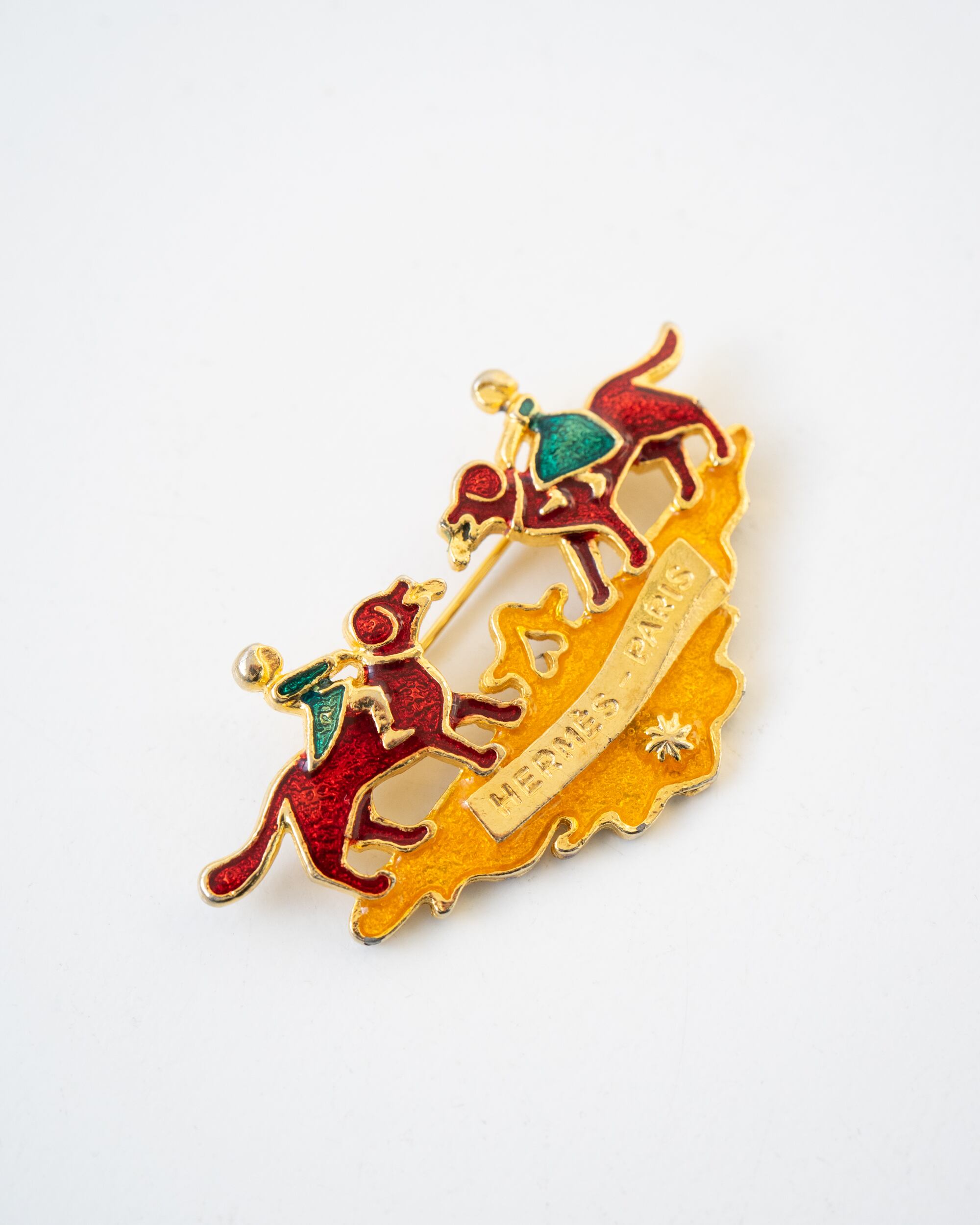 エルメス ブローチ 犬と少女 七宝焼き